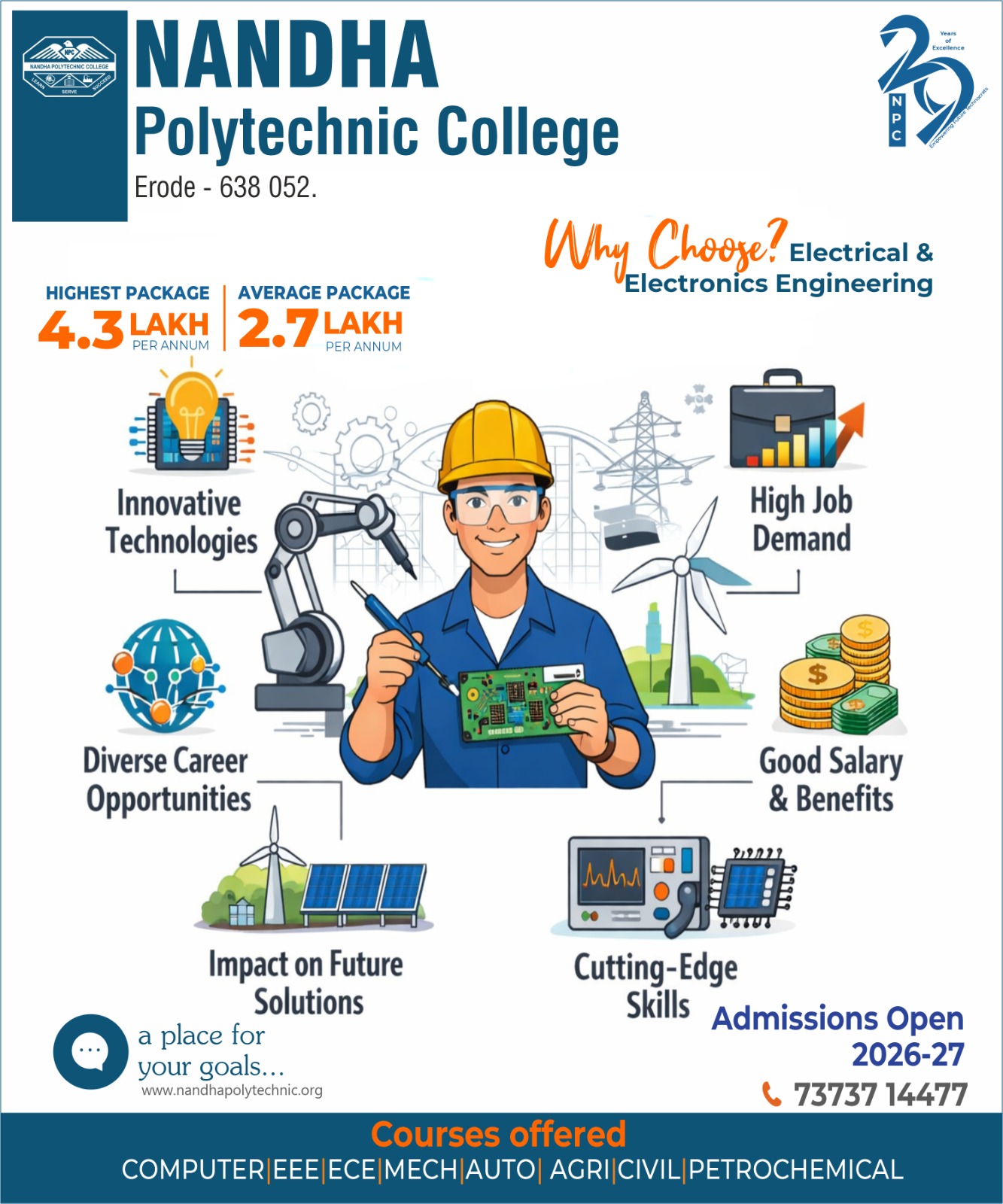 Our teaching methodologies are characterized and geared fully to meet the expectations of the industries. Bringing excellence is a long term endeavor and Nandha Polytechnic College is on the marching path of excellence at all times.